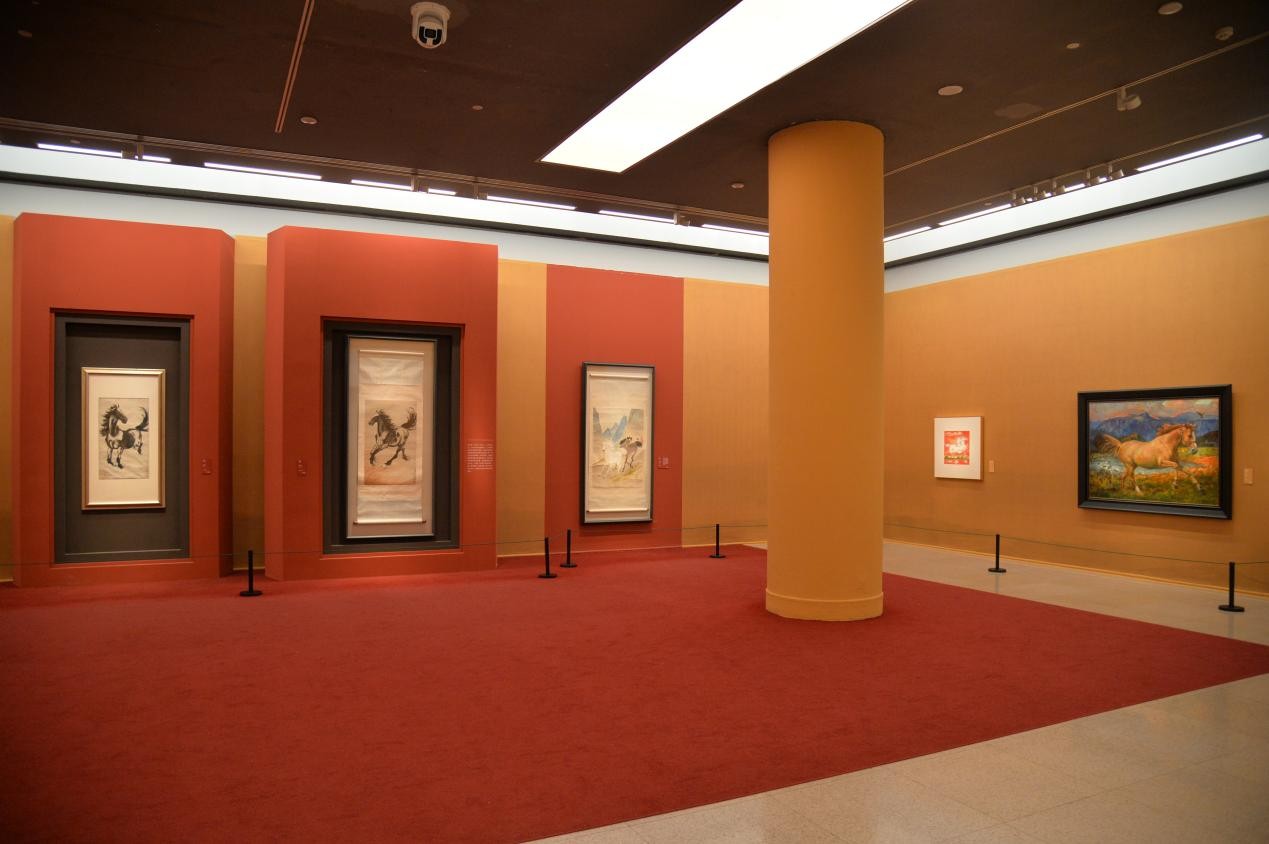 “骏驰云章——中国美术中的马”作为呼应丙午新春的核心展览,集中呈现81位艺术家创作的84件作品,分为“万马奔腾”“松风逸骏”“边塞牧歌”“金戈铁马”“以梦为马”五个篇章。展品涵盖中国画、油画、版画、雕塑等多种艺术形式,从徐悲鸿1944年所作昂首飞蹄的《奔马》,到傅抱石表现日神豪迈气质的《东君》,再到黄胄线条迅疾的《打马球》,这些骏马英姿既是民族精神的象征,亦是时代气象的生动写照。